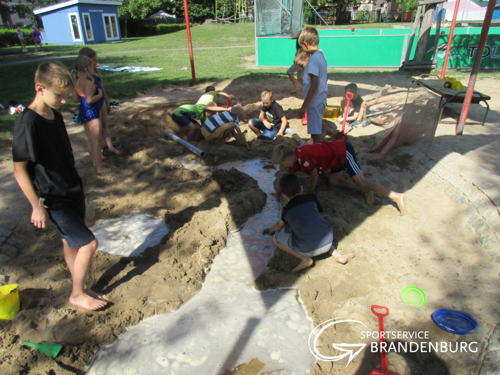 Die vierte Woche stand ganz im Zeichen von Wasserspaß. Wir starteten die Wochen mit einer Kneipp-Methode, bei der es um Wasseranwendungen und deren positive Wirkung auf die Gesundheit geht. Im Sandkasten bauten die Kinder eine spannende Matchstrecke, bei der sie Bäche mit verschiedenen Materialien und Wasser konstruierten. Zusätzlich sorgten zahlreiche Wasserpiele für jede Menge Freude: Die Kinder planschten, experimentierten mit verschiedenen Wasserbehältern und genossen die Erfrischung an heißen Tagen.