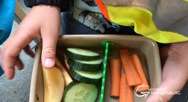 Als der Regen einsetzt, der für die Natur wirklich wichtig ist, ziehen wir uns in den grünen Wagen zurück. Dort kosten wir selbstgemachten Kräuterquark und teilen unsere Obstboxen mit den anderen Kindern.