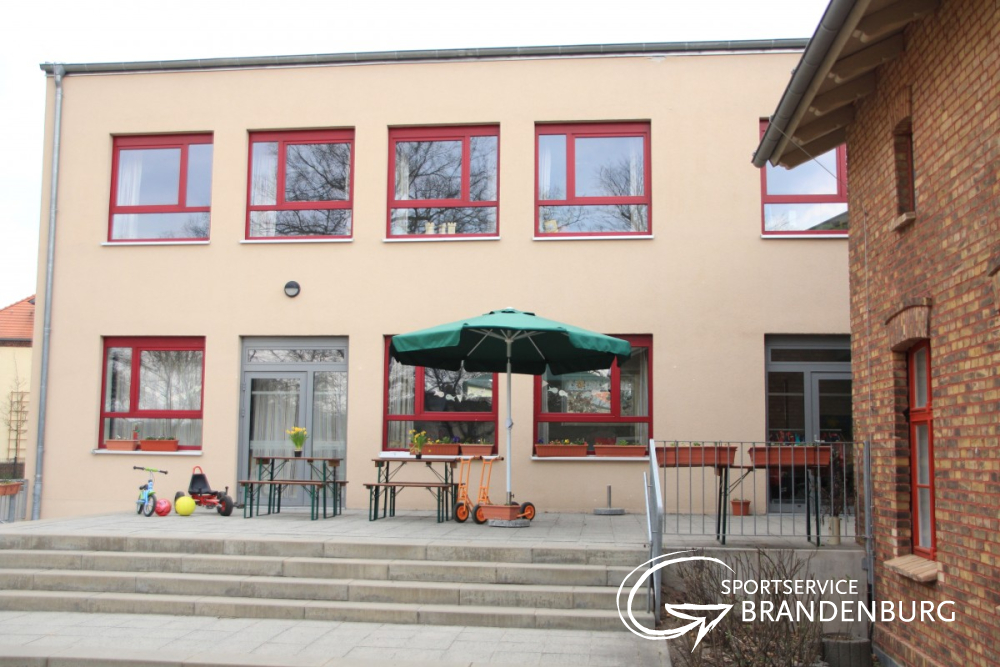 Das Außengelände ist ca. 8800 m² groß und wird gemeinsam vom Kindergarten und Hort genutzt. Es ist großzügig und aufwändig gestaltet. Es bietet viele Möglichkeiten für den Bewegungsdrang der Kinder.