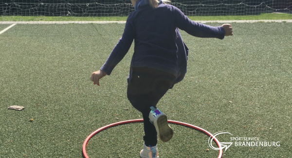 --> Übung 4: „Einbeiniger Sprung in einen Reifen“ - Die Kinder stehen ca. eine Fußlänge, von dem am Boden liegenden Reifen, entfernt. Dabei stehe sie auf einem Bein und springen mit diesem in den Reifen und versuchen 5 Sekunden stehen zu bleiben. Jedes Bein ist einmal dran.