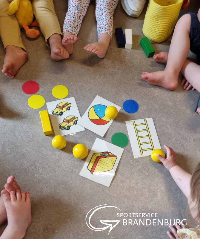 In jeder Woche wird eine neue Farbe (rot, grün, blau, gelb) besprochen...Die Kinder ziehen sich, soweit vorhanden, jeden Tag in der entsprechenden Farbe an, es wird Obst mitgebracht, Hand-/und Fußabdrücke werden angefertigt und bei den wöchentlichen Spaziergängen werden die entsprechenden Farben gesucht.