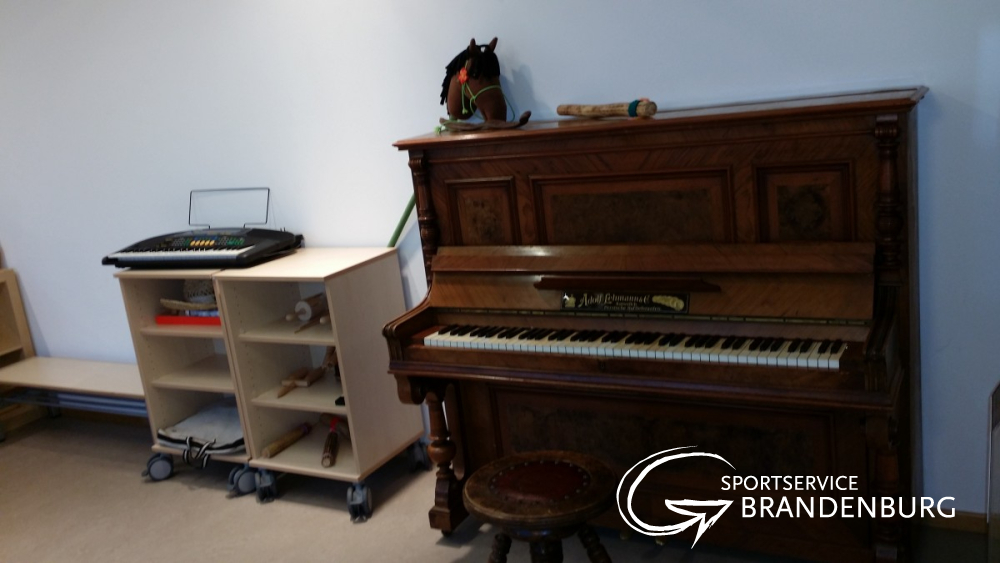 Darüber hinaus bietet das Außengelände mit seinen Toren und der großen Kunstrasenfläche genügend Platz zum Bewegen.