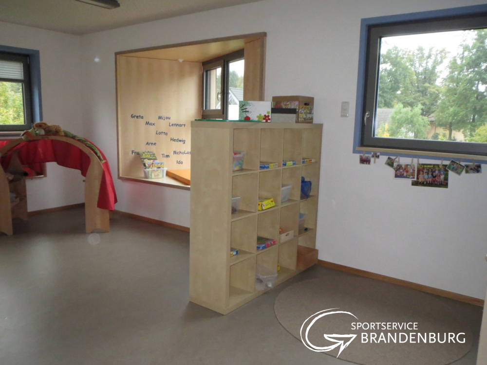 Unsere Gruppenräume erfüllen mit ihrer Ausstattung den Anspruch unseres bewegungsorientierten Konzepts und garantieren durch ihre beweglichen Möbelstücke ein schnelles Umräumen, um den Kindern Platz für ihre Bewegung zu lassen. Um die Kinder in ihrer Selbstständigkeit und Motorik weiter zu unterstützen, bieten die Räume unterschiedliche Sitzmöglichkeiten an. Die altersentsprechende Entwicklung der Kinder und ihre Fähigkeiten werden dabei stetig berücksichtigt. Wir haben ein gezielt ausgewähltes Angebot an Spielmöglichkeiten in allen Bereichen. Helle, freundliche und bewusst dekorierte Räume laden die Kinder zum Bewegen, Spielen und Lernen ein. Durch eine gezielte Farbwahl sind die identisch aufgebauten Bereiche geschickt abgegrenzt und für die Kinder klar zuzuordnen.