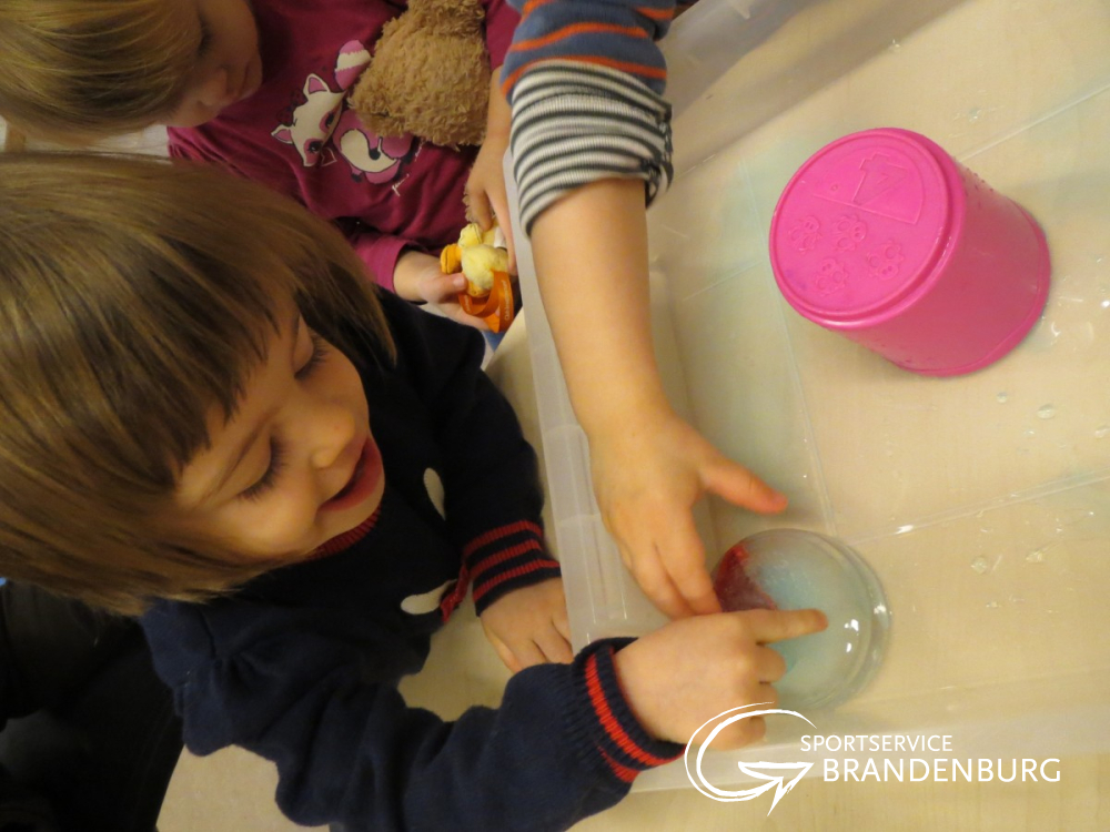 n Bewegung" ziert unsere Eingangstür der KITA und ist maßgeblicher Leitgedanke bei der Umsetzung unseres bewegungs- und gesundheitsorientierten Konzepts. Dabei verstehen wir das Bildungsziel Bewegung als verbindendes Element aller Bildungsbereiche und strukturieren unseren Tagesablauf auf verschiedene Weise bewegt. Hierbei zählt es nicht immer den eigenen Körper selbst und ständig in Bewegung zu halten, sondern vielmehr Bewegung in all seiner Form zu erfahren. So greifen wir die individuellen Interessen unserer Kinder und die zahlreichen Ideen unseres Teams auf und lassen Wörter fliegen, Bälle rollen, Wasser fließen, Zahlen hüpfen oder Formen legen.