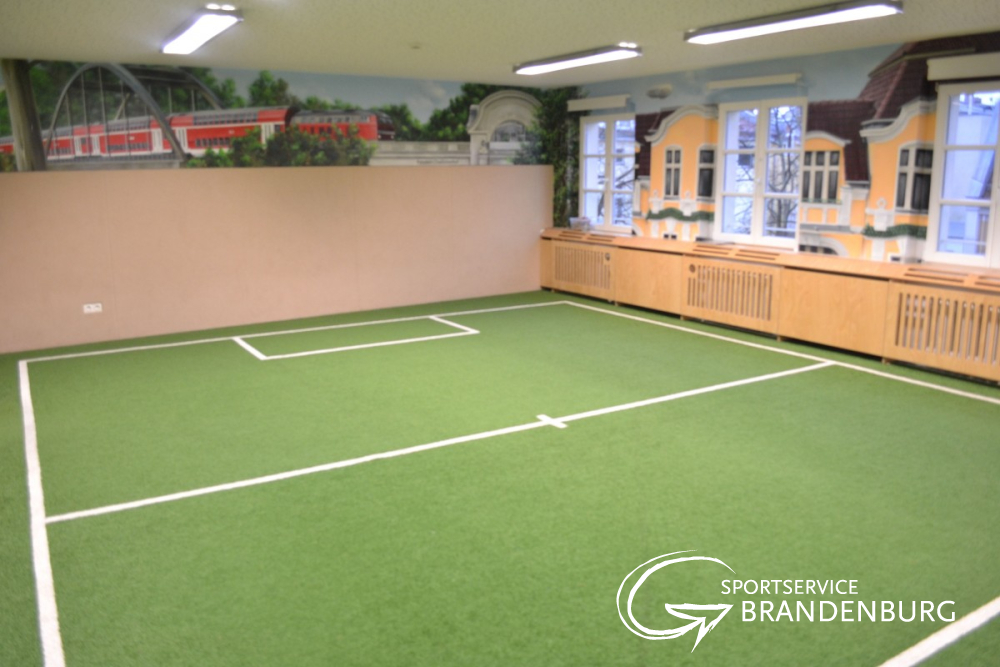 Auf einer Freispielfläche von ca. 1200 qm haben die Kinder die Möglichkeit, ihre Geschicklichkeit auf einer Hangelstrecke zu erproben, Bobbycar, Roller oder Laufrad zu fahren und auch auf einem Kunstrasenfeld Fußball zu spielen.