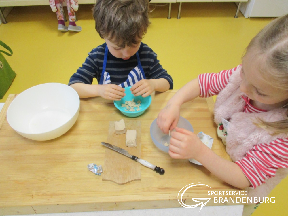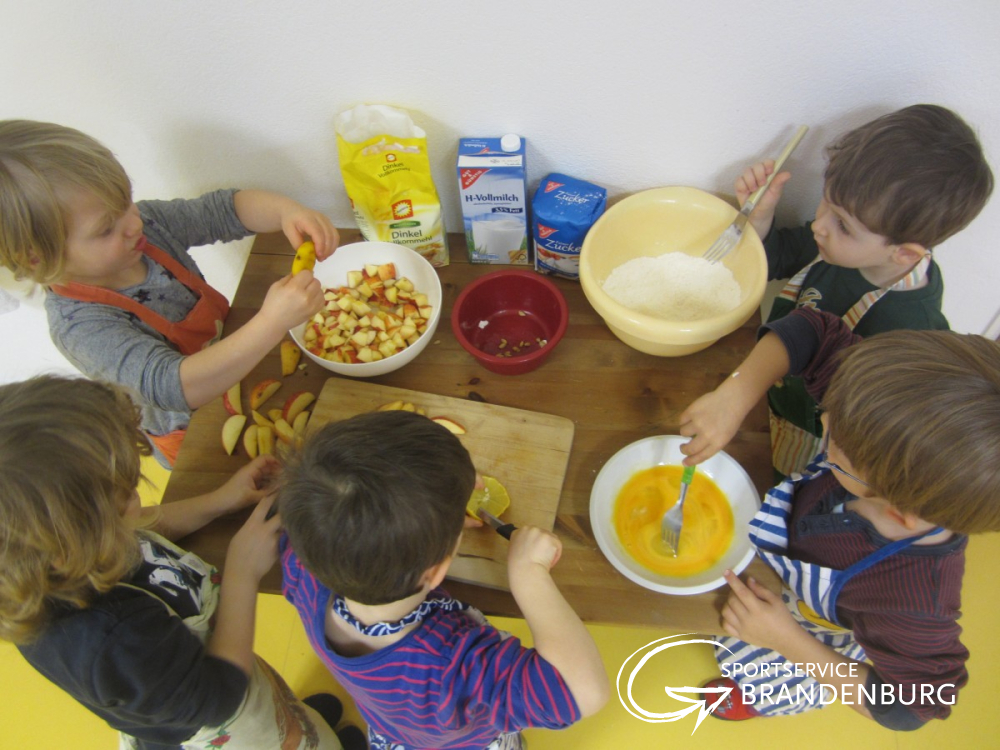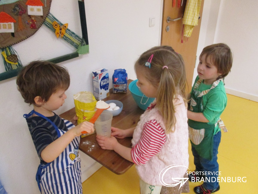 Sie lernen in der hauseigenen Kinderküche durch die eigene Zubereitung ihrer Nahrung, spielerisches Auseinandersetzen mit Lebensmittelgruppen der aid Pyramide, die gesunde Ernährung kennen. Über das bewusste Mitgestalten gesunder Kost können die Kinder ihr eigenes Ess- und Trinkverhalten mitgestalten und für ein gesundheitsförderliches Essen sensibilisiert werden.
