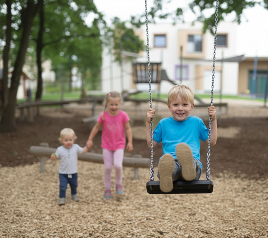 In sieben Bereichen betreuen wir bis zu 220 Kinder vom ersten Lebensjahr bis zum Schuleintritt. Unser großzügiges Außengelände mit vielfältigen Spielbereichen, Garten und Platz für Bewegung ist dabei ebenso lebendig wie unsere pädagogische Arbeit. Bewegung ist bei uns mehr als ein Schwerpunkt – sie ist unser Prinzip. Wir schaffen einen Alltag, der Kinder stärkt: durch Rituale, durch Freiraum und durch ein Team, das achtsam begleitet und Entwicklung individuell versteht.
