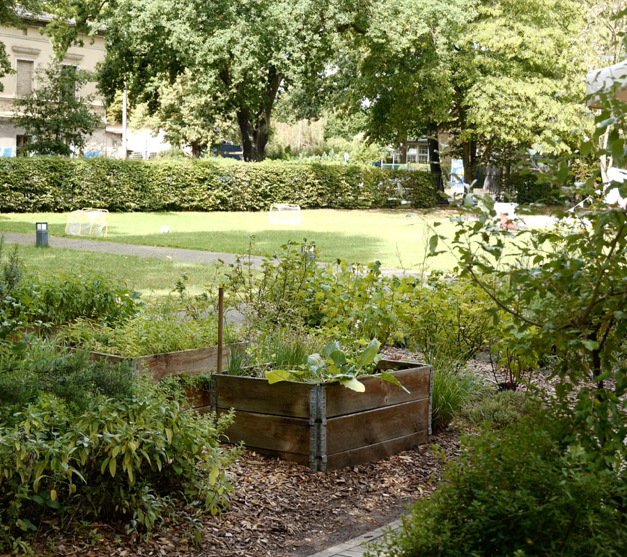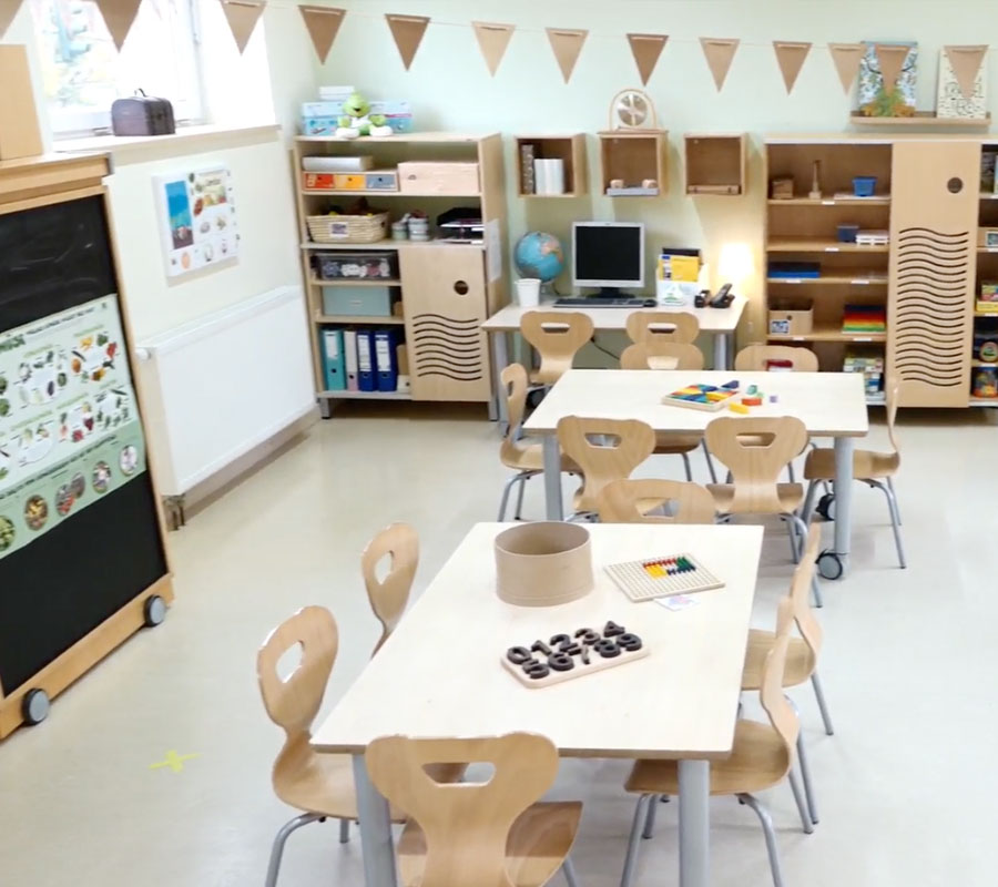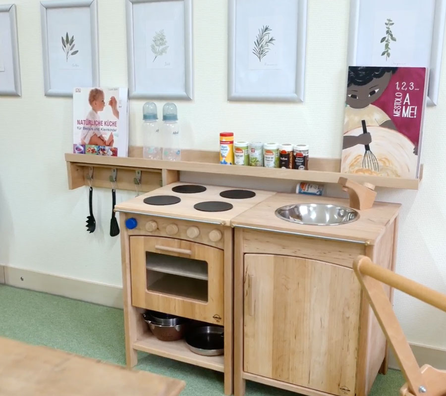 Die Kita Schulplatz 1 befindet sich in einem modernen Anbau in Potsdam. Die Räume sind großzügig, lichtdurchflutet und auf eine bewegte, strukturierte und sinnorientierte Pädagogik ausgerichtet. Jedes Detail unterstützt das selbstständige Tun und die gesunde Entwicklung der Kinder.