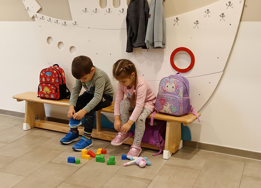 06:00–08:00 Uhr: Ankommen; Freispiel, Bewegung im Innen- und Außenbereich